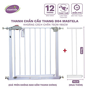 - Chất liệu cao cấp, đạt tiêu chuẩn quốc tế CÓ THỂ MỞ RỘNG KÍCH THƯỚC Thanh chắn cửa, chắn cầu thang Mastela D04 có thể được mở rộng với các thanh mở rộng với 4 kích thước khác nhau: