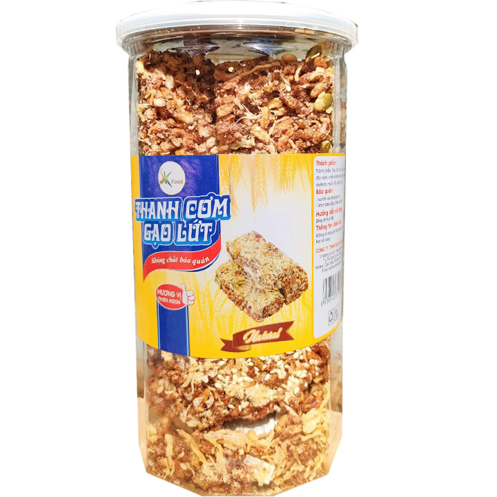 Xuất xứ : Việt Nam. Ngày sản xuất: In trên bao bì Trọng lượng: In trên bao bì Thương Hiệu SK FOOD Sản phẩm có giấy chứng nhận an toàn vệ sinh thực phẩm. Hướng dẫn sử dụng: Dùng trực tiếp, không cần chế biến. Hướng dẫn bảo quản: Nơi khô ráo thoáng mát, tránh ánh nắng mặt trời. Dùng không hết có thể đóng kín miệng nắp để dùng lần sau. Không sử dụng sản phẩm đã hết hạn. THANH CƠM GẠO LỨT CHÀ BÔNG