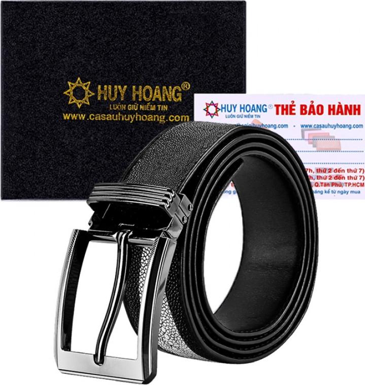 Dây nịt/Thắt lưng nam da bò Huy Hoàng 1m4 đầu tăng 4P màu đen 4144