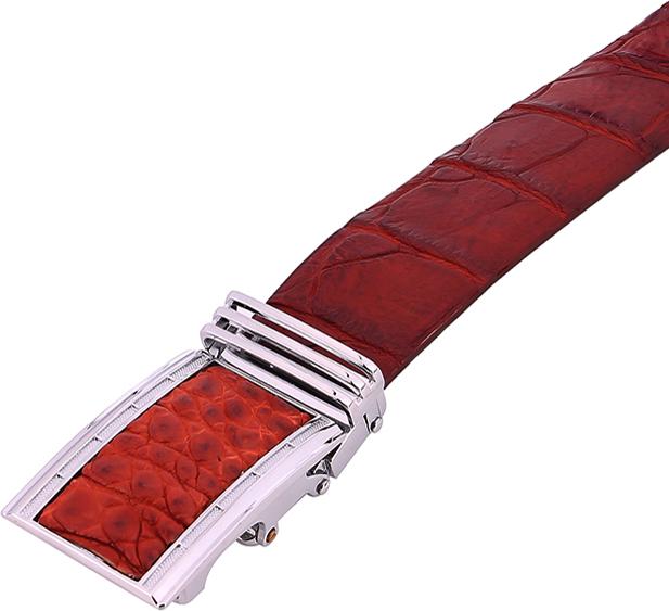 Dây nịt da cá sấu màu nâu đỏ da bụng