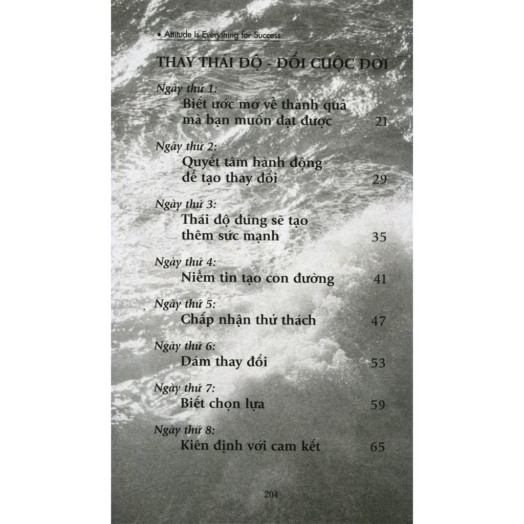 Cuốn sách nhấn mạnh một thái độ sống tích cực sẽ giúp bạn luôn lạc quan, yêu đời, tự tin để vượt qua mọi khó khăn, thử thách trong công việc và đời sống. Ngược lại, một thái độ sống tiêu cực sẽ đóng chặt bạn vào những suy nghĩ, cách nhìn phiến diện, vị kỷ, tự ti, đau khổ và dễ dàng đầu hàng trước thất bại, bất hạnh. Chính thái độ của bạn sẽ có tác động sâu sắc đến mọi khía cạnh trong cuộc sống và quyết định kết quả, thành công mọi việc bạn làm.