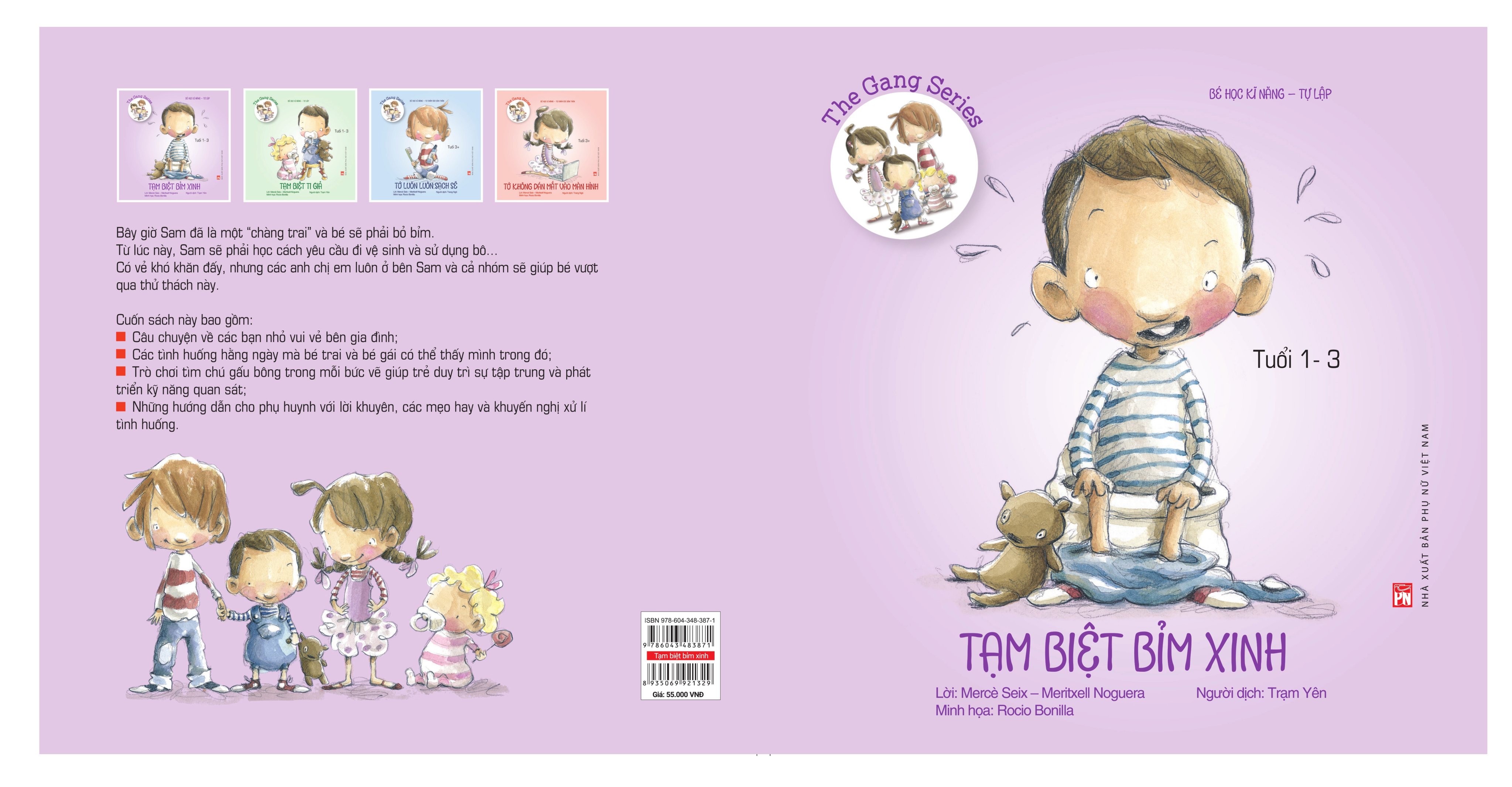 Bộ sách Bé học kĩ năng gồm 4 cuốn Tạm biệt ti giả, Tạm biệt bỉm xinh, Tớ luôn luôn sạch sẽ, Tớ không dán mắt vào màn hình. Mỗi cuốn sách trình bày những nội dung tưởng chừng đơn giản, như làm thế nào giúp con ngưng dùng ti giả, làm thế nào giúp bé bỏ bỉm, tập ngồi bô nhưng hóa ra lại vô cùng thiết thực.