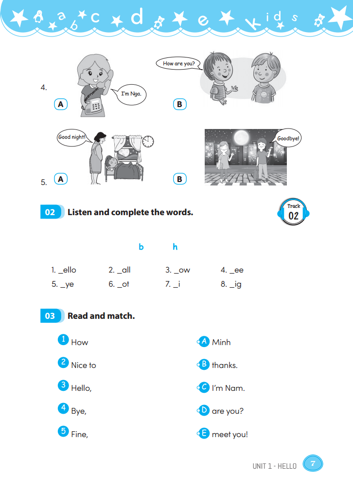 Nội dung phần nghe trong sách là link tải đĩa CD (đính kèm trên bìa sách) phát âm chuẩn tiếng Anh của người bản ngữ. Các em có thể sử dụng điện thoại smartphone để quét mã QR và tải các bài học một cách nhanh chóng và thuận tiện.