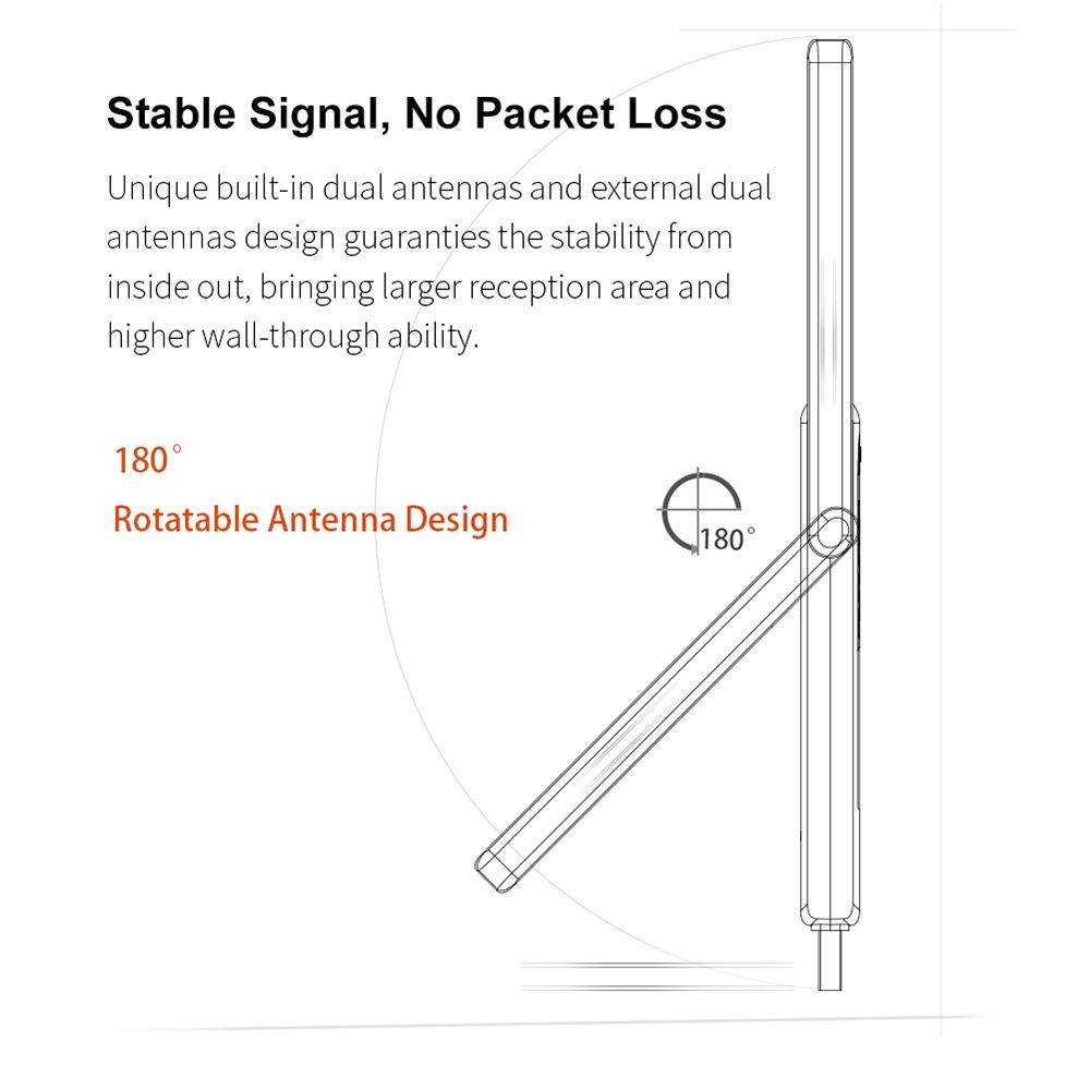 Unique built-in dual antennas and external dual antennas design ensures thestability from inside out, bringing larger reception area and higher wall-through ability.