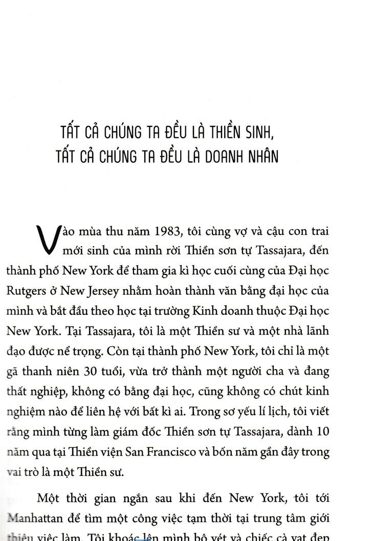 "Thiền Đình" và "Kinh Doanh" là hai khái niệm tưởng chừng như hoàn toàn khác biệt.Nhưng dưới con mắt của Marc Leser - một doanh nhân tự tay gây dựng doanh nghiệp của riêng mình,và củng là một thiền sư đã hành Thiền trong hơn 30 năm - thì mối liên kết giữa hai khai niệm này lại vô cùng chặt chẽ,và "tất cả chúng ta đều là thiền sinh,tất cả chúng ta đều là doanh nhân"