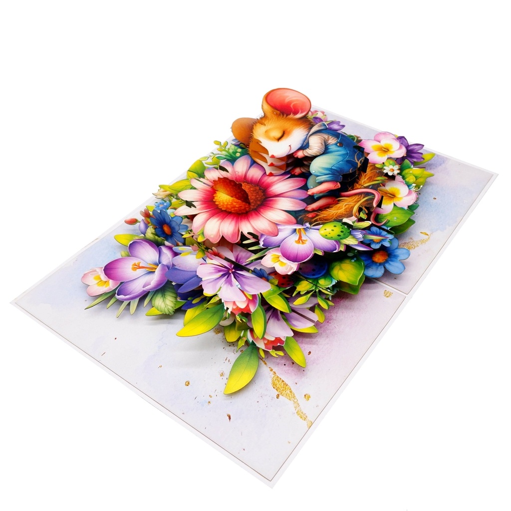 ✨Thiệp 3D Chuột Con Ngủ Trong Vườn Hoa – Thiệp Pop Up Dễ Thương, Độc Đáo Tặng Sinh Nhật, Lễ Tình Nhân, Ngày Quốc Tế Thiếu Nhi, F59