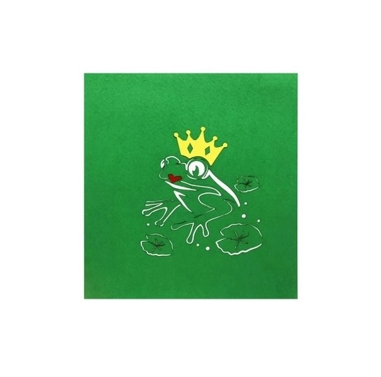 Thêm phần thú vị và bất ngờ cho món quà của bạn với thiệp 3D Ếch Hoàng Tử. Khi mở thiệp, hình ảnh chú ếch xanh đội vương miện vàng ngồi trên lá sen giữa