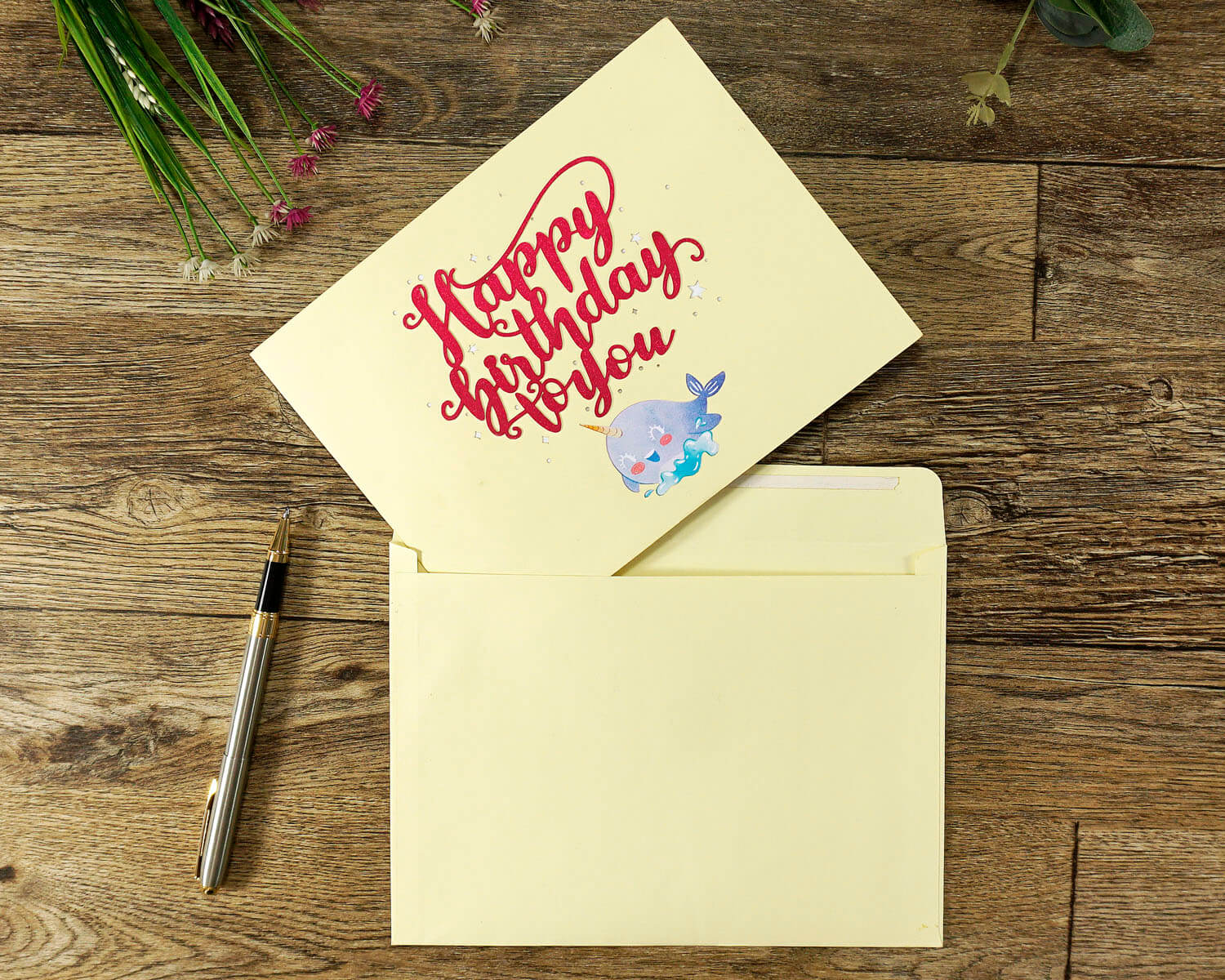 Mang đến bất ngờ vui nhộn với thiệp 3D Pop Up hình cá voi xanh đáng yêu kèm bong bóng sinh nhật đầy màu sắc. Khi mở thiệp, cá voi bật nổi giữa làn sóng