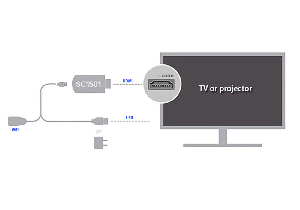 Support the Miracast: iOS 5 or above, Android 4.0 or above, Windows 8.1 or above