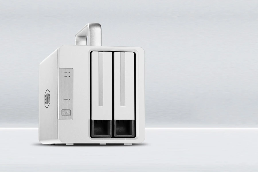 DAS-2 bay TerraMaster D2-320 với thiết kế vỏ đen nhám tối giản, hiệu suất cao hơn và yên tĩnh hơn so với các model DAS trước đó của TerraMaster. das 2-bay terramaster d2-320 chính