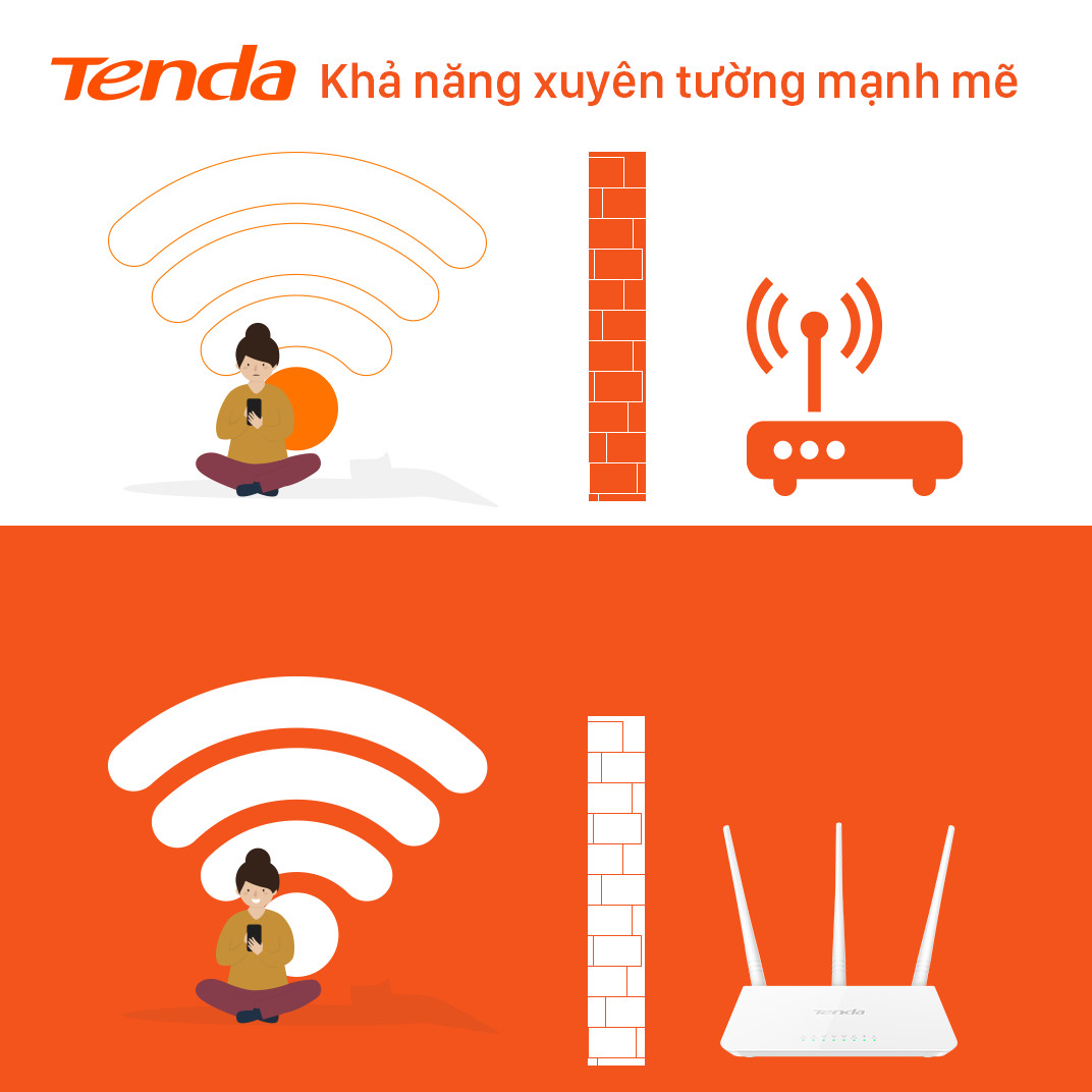 Modem Wifi Xuyên Tường TENDA F3 Modem Router Bộ Cục Phát Wifi Râu TENDA Xuyên Tường