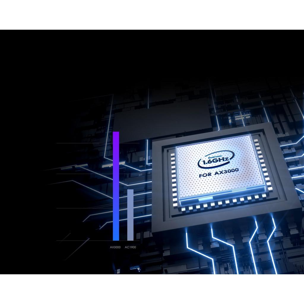 Router 3200Mbps Wi-Fi 6 Dual-band Gigabit Mesh: - Băng thông lớn; CPU lõi kép 4 luồng, hỗ trợ NAT - Truy cập đồng thời 48 người dùng (đề xuất) truy cập Wifi hai dải băng