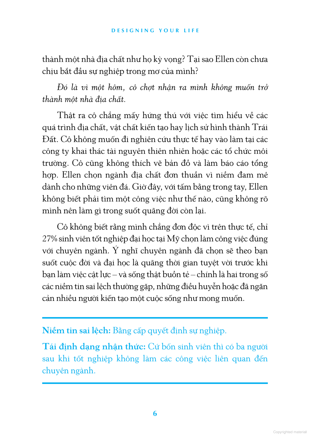 "Không quan trọng bạn là ai, làm công việc gì, đã có tuổi hay vẫn còn trẻ, bạn có thể sử dụng chính phương pháp tư duy đã tạo ra những công nghệ, sản phẩm và không gian tuyệt vời để thiết kế sự nghiệp và cuộc sống của m.ình". Bill Burnett và Dave Evans đã dạy cho hàng nghìn sinh viên Stanford về tư duy thiết kế và cách thiết kế cuộc sống. Cuốn sách lọt vào danh sách bestseller của New York Times này đã giúp rất nhiều người trên thế giới bước ra khỏi vòng lẩn quẩn của cuộc đời để sống hạnh phúc.