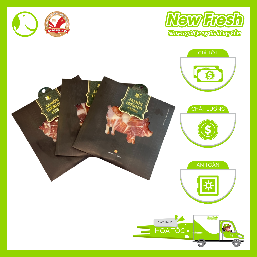 - Heo Iberico Cebo phải được nuôi ít nhất trong 10 tháng và đạt trọng lượng từ 100 - 115kg/con. Đùi sau Iberico Cebo cắt lát - Tây Ban Nha CÁCH THƯỞNG THỨC ĐÙI SAU IBERICO CEBO Những miếng thịt heo muối được cắt lát mỏng, khi ăn giúp cảm nhận được rõ hương vị của thịt. Đùi sau Iberico Cebo có thể kết hợp ăn kèm với với bánh mì, oliu, phô mai và salad và các món ăn khác. Lưu ý: bạn nên thưởng thức trực tiếp đùi sau Iberico Cebo không cần qua chế biến, không cần loại nước chấm nào. Như vậy sẽ cảm nhận được vị đậm đà, béo vốn có của thịt heo muối. MÁCH BẠN NỚI MUA HEO IBERICO CHẤT LƯỢNG CHÍNH HÃNG? Hiện nay New Fresh đang là một trong những lựa chọn ưu tiên trên thị trường thực phẩm TP Hồ Chí MInh. Với nhiều năm kinh nghiệm trong giới ẩm thực và sứ mệnh mang lại nhiều loại thực phẩm cao cấp cho khách hàng, New Fresh ngày càng khẳng định vị trí của mình trên thị trường. Vậy nên nếu bạn đang tìm mua thịt heo Iberico chất lượng, uy tín thì liên hệ New Fresh nhé!