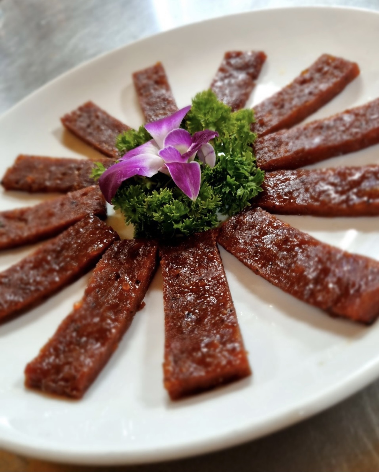 Thịt Heo sấy khô Bakkwa (Nhục Can) Gia Vị HOÀ KÝ. Đây là 1 loại thịt Heo sấy khô nguồn gốc từ tỉnh Phúc Kiến- Trung Hoa. Món ăn Bakkwa (Nhục Căn) nầy được du
