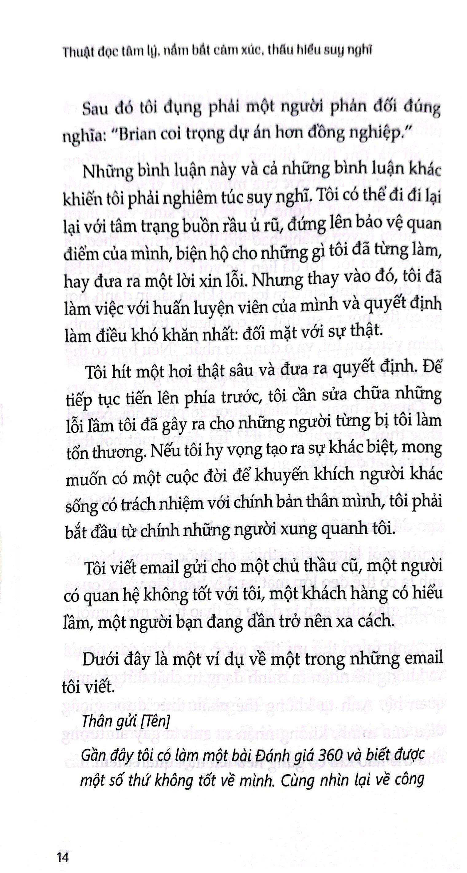 - Thêm vào đó, bạn sẽ học được những phương pháp luyện tập hàng ngày để thay đổi hoàn toàn tư duy của bạn. Cuốn sách . “Thuật đọc tâm lý, nắm bắt cảm xúc, thấu hiểu suy nghĩ’’ là một kế hoạch chi tiết theo từng bước để giúp bạn yêu công việc và quyết liệt theo đuổi đam mê. Với vô số những nguyên tắc chiến lược, những bí quyết thực tế, và những ví dụ sinh động, bạn sẽ nhận được sự trợ giúp đắc lực của mọi người xung quanh để tự tin và thành công. Bạn đã mệt mỏi vì phải vật lộn? Và đã sẵn sàng hành động ngay bây giờ? Hãy bắt đầu mở cánh cửa đến sự thịnh vượng ngay hôm nay.