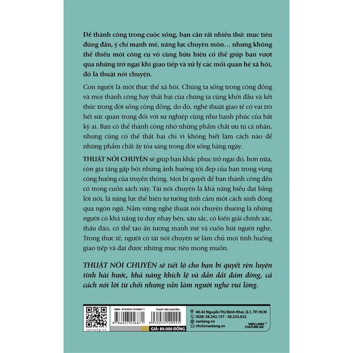 Giới thiệu sách Thuật Nói Chuyện Nâng cao phong cách giao tiếp đắc nhân tâm thời đại số Để thành công trong cuộc sống, bạn cần rất nhiều thứ: mục tiêu đúng đắn, ý chí mạnh mẽ, năng lực chuyên môn… nhưng không thể thiếu một công cụ vô cùng hữu hiệu có thể giúp bạn vượt qua những trở ngại khi giao tiếp và xử lý các mối quan hệ xã hội, đó là thuật nói chuyện.