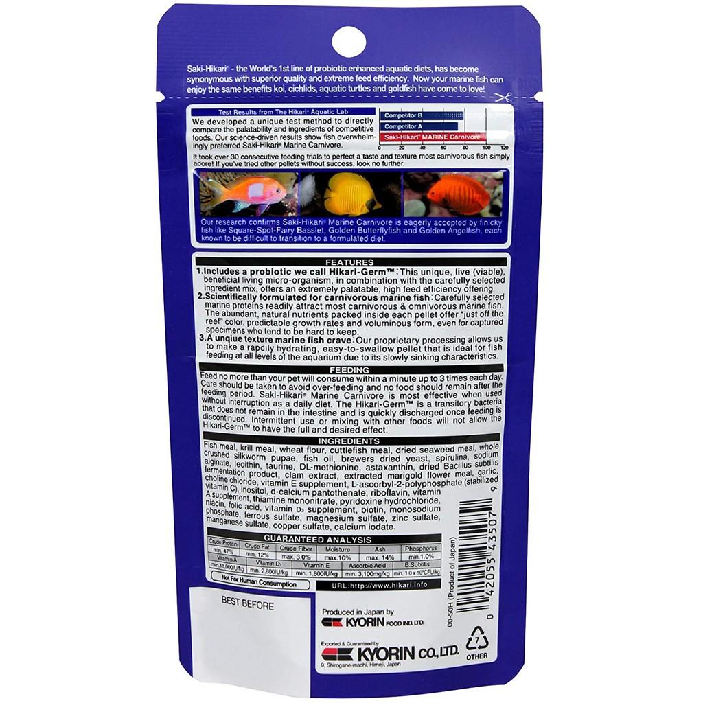 - Trọng lượng gói cho cá ăn thịt SAKI-HIKARI MARINE CARNIVORE : 40 GRAM