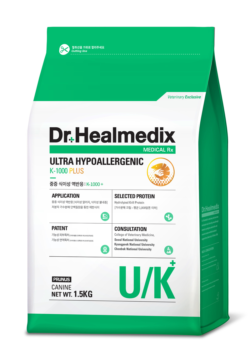 Thức ăn chó Dr. Healmedix Ultra Hypoallergenic K1000 Plus U/K 1.5kg - Hỗ trợ viêm da #petshop