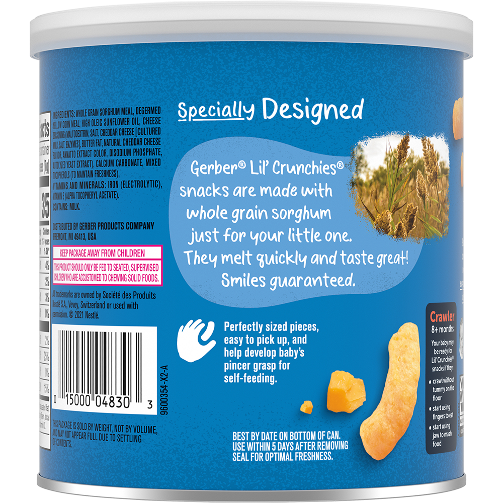 Bánh Ăn Dặm Gerber Lil's Crunchies vị Phô Mai Mild Cheddar 42g - Thực Phẩm Bổ Sung Dành cho trẻ trên 8 tháng tuổi - Bánh Gerber Crunchies với kết cấu giòn tan, kích thích
