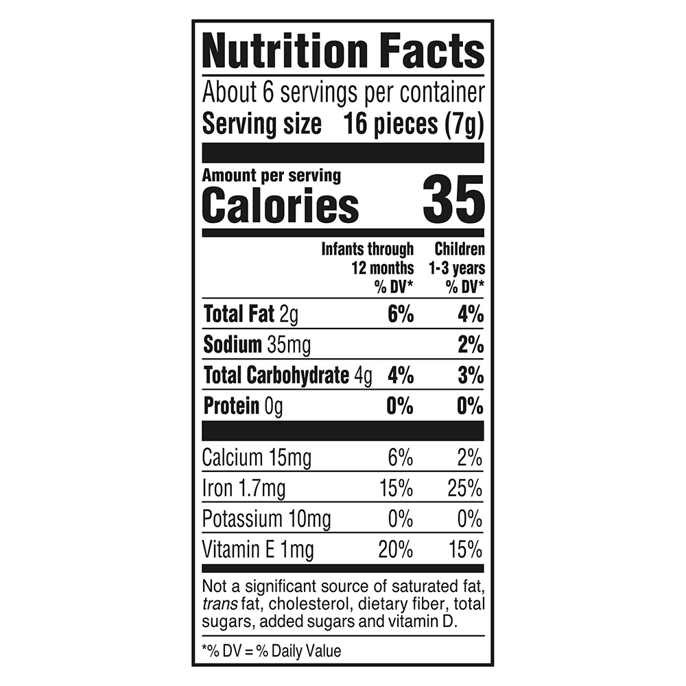 - Bánh Gerber Crunchies với kết cấu giòn tan, kích thích vị giác bé khám phá thế giới ẩm thực. Hương vị tự nhiên, không chứa chất tạo ngọt và hương liệu an toàn cho sức khỏe của bé. Thành phần