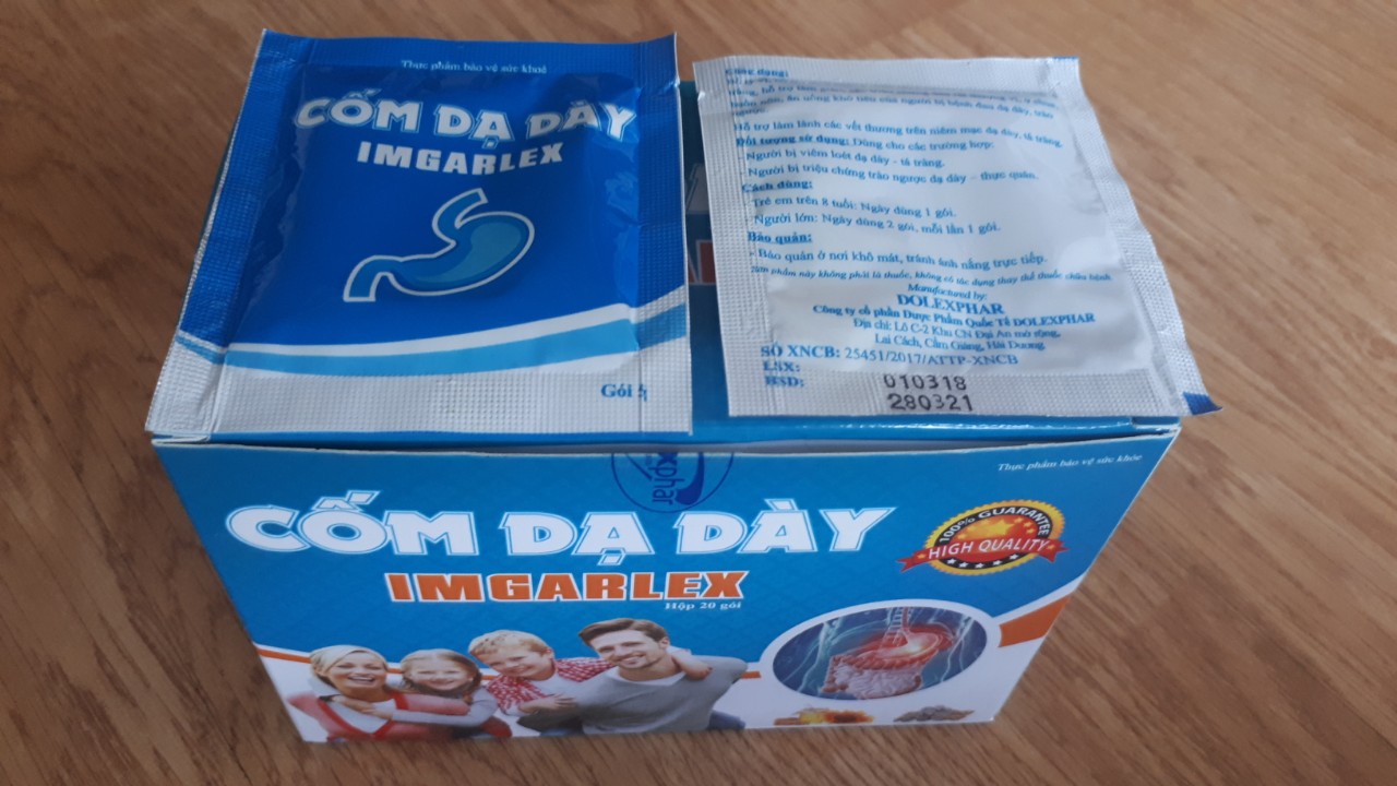 - Người bị triệu chứng trào ngược dạ dày – thực quản. Cách dùng : Trẻ em trên 8 tuổi: Ngày dùng 1 gói. Người lớn: Ngày dùng 2 gói, mỗi lần 1 gói. Chú ý: Sản phẩm này không phải là thuốc, không có tác dụng thay thế thuốc chữa bệnh Bảo quản: Bảo quản nơi khô mát, tránh ánh nắng mặt trời. Hạn sử dụng: 36 tháng kể từ ngày sản xuất.