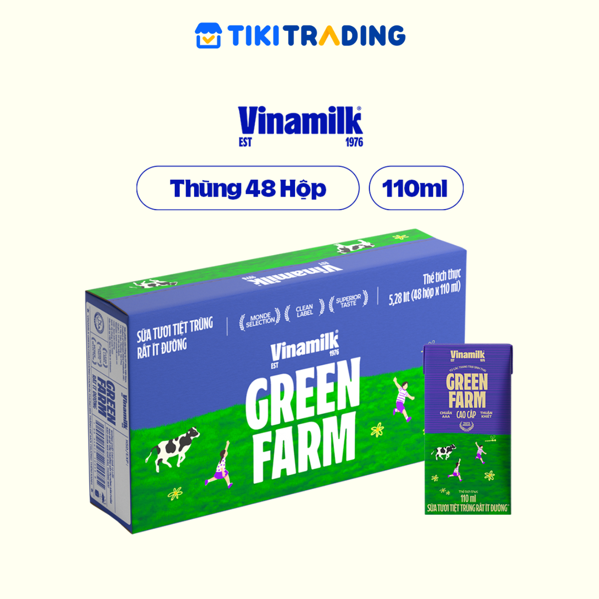- Sữa Tươi Tiệt Trùng Vinamilk Green Farm - Sữa Tươi 100% Ít Đường 110ml cao cấp mới với nguồn sữa tươi 100% thuần khiết từ hệ thống trang trại sinh thái Vinamilk Green Farm