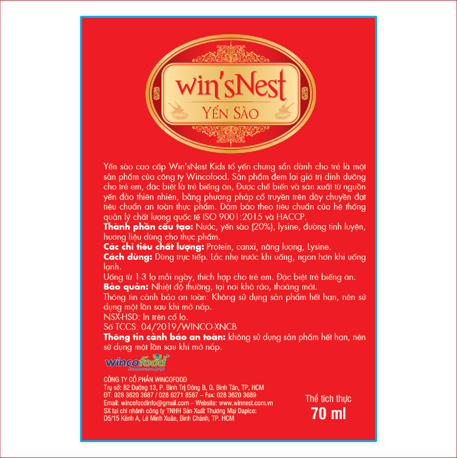 THÔNG TIN SẢN PHẨM 1. THÀNH PHẦN Nước (90%) Yến sào ngâm nở (20mg/240ml) Đường phèn Đường Hữu Cơ Chất làm dày, Chất điều chỉnh độ acid Hương liệu yến nhân tạo 2. HƯỚNG