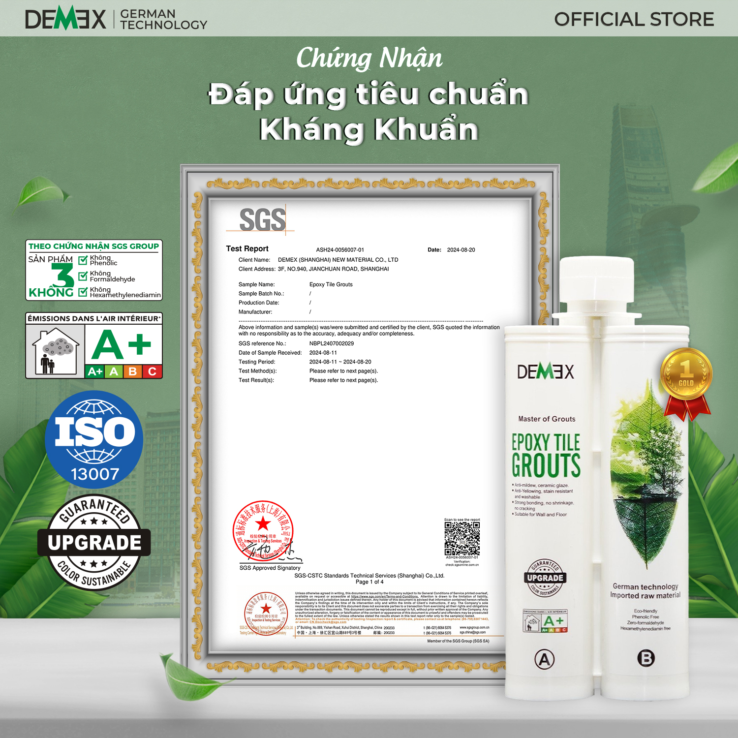 Keo Chà Ron DEMEX được sử dụng trong công trình và nhà ở, là loại keo epoxy hai thành phần dùng để trám khe nối gạch hay các khe hở trong xây dựng. Keo Chà Ron không chứa 3 chất hóa học gây ung thư, bảo vệ môi trường. Đạt chứng chỉ A+ của Pháp.   SẢN PHẨM KEO CHÀ RON DEMEX 3 KHÔNG DUY NHẤT TẠI VIỆT NAM - KHÔNG Phenolic – Hoàn toàn không chứa các chất gây kích ứng da, mắt và đường hô hấp, bảo vệ sức khỏe toàn diện. - KHÔNG Formaldehyde – Đảm bảo không gây ô nhiễm không khí, giảm thiểu nguy cơ ung thư và ảnh hưởng xấu đến khả năng sinh sản nam giới. - KHÔNG Hexamethylenediamine – Ngăn ngừa các phản ứng dị ứng và bảo vệ hệ hô hấp khỏi các tác động tiêu cực.   Thông tin sản phẩm: - Dung tích: 400gr - Màu sắc: 17 màu - Diện tích thi công: Khoảng 23m đường ron mạch    Công dụng sản phẩm: - Keo chà ron DEMEX dùng để chít mạch khi ốp lát các loại gạch Ceramic, gạch sứ porcelain. - Áp dụng cho ốp tường và lát sàn, keo chà ron còn có thể dùng để chít các mạch xung quanh bếp, bồn cầu, lavabo, bồn tắm, tường.   Hướng dẫn sử dụng:   Để đạt hiệu quả tốt nhất, quý khách cần sử dụng kèm bộ dụng cụ keo chít mạch chuyên dụng (xem trong phần sản phẩm của DEMEX).  Chất lượng cam kết: DEMEX Việt Nam cam kết tất cả sản phẩm đều đạt chuẩn chất lượng. Trong trường hợp sản phẩm có lỗi, xin vui lòng liên hệ qua chatbox để được đổi trả sản phẩm và hoàn tiền nếu không đúng cam kết.