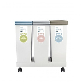 Thùng rác phân loại Hiro 3 ngăn Mã SP: .003N Kích thước: 537x336x530 mm Khối lượng: 3620 g Chất liệu: Nhựa PP, PA nguyên sinh, hạt màu, phụ gia kháng khuẩn (Ag+), lò xo Màu sắc: Xanh nhạt + Ghi sữa + Nâu Café HƯỚNG DẪN SỬ DỤNG: Dùng để đựng và phân loại rác trong gia đình, văn phòng, nhà hàng,… ƯU ĐIỂM: Thiết kế hiện đại, dễ dàng tháo lắp và vệ sinh, bánh xe di động giúp di chuyển dễ dàng ===GÓC NHẬT TRONG NHÀ VIỆT===