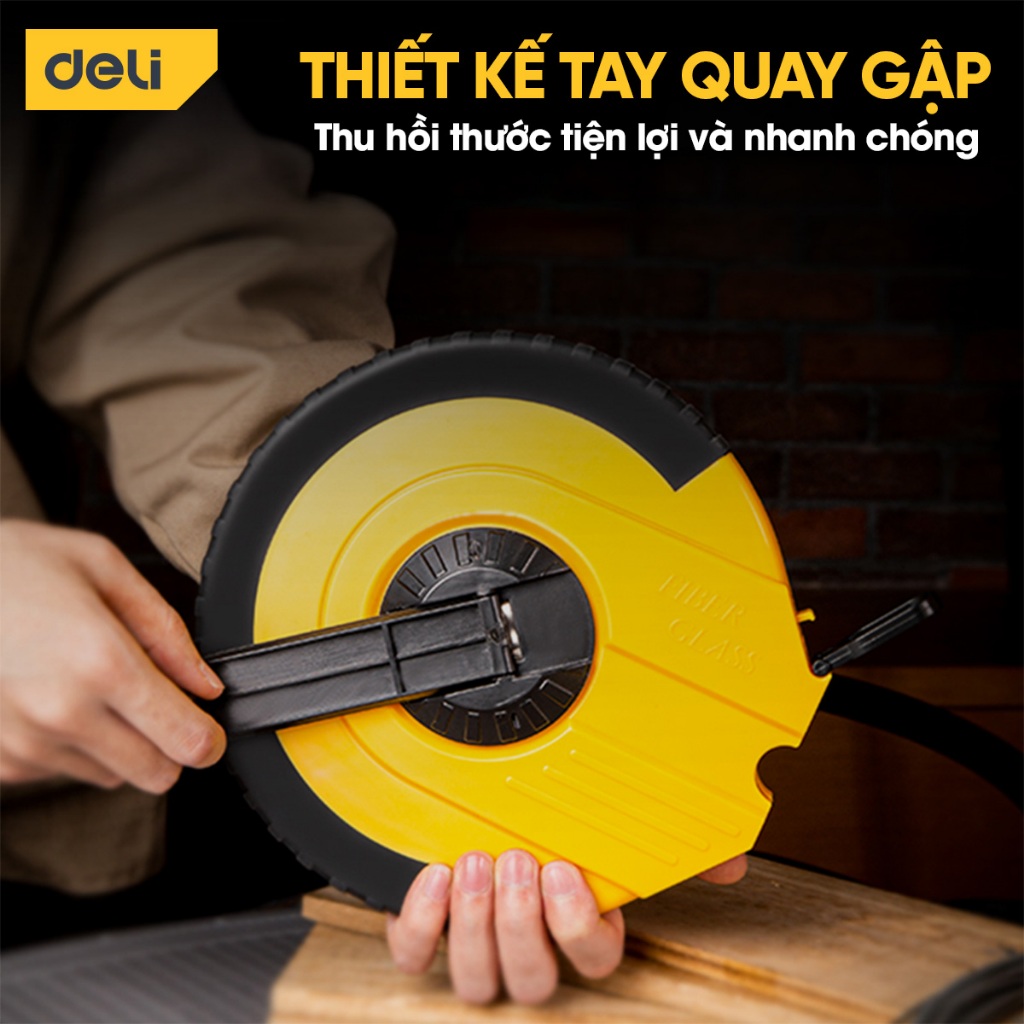 ✨Thước cuộn 50m Deli Cao Cấp - Thước cuộn siêu dài có móc giữ cố định - vạch chia rõ