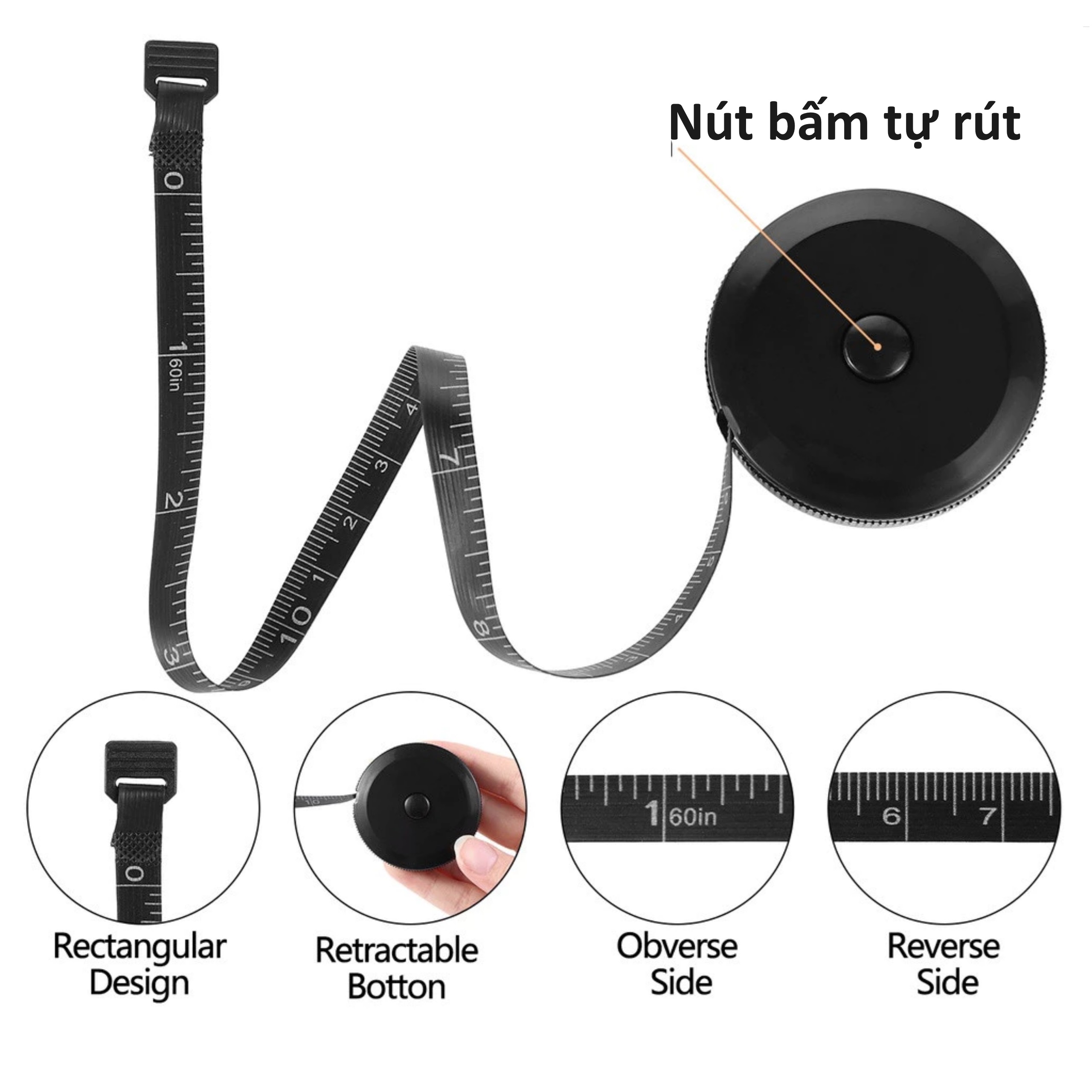 Thước Dây Với Nút Bấm Tự Rút Sau Khi Kéo, Đo Vòng Bụng, Vòng Eo 3 Vòng Kiểm Tra Sức Khỏe 1.5m - Đo Quần Áo. Một trong những đánh giá yêu thương của khách