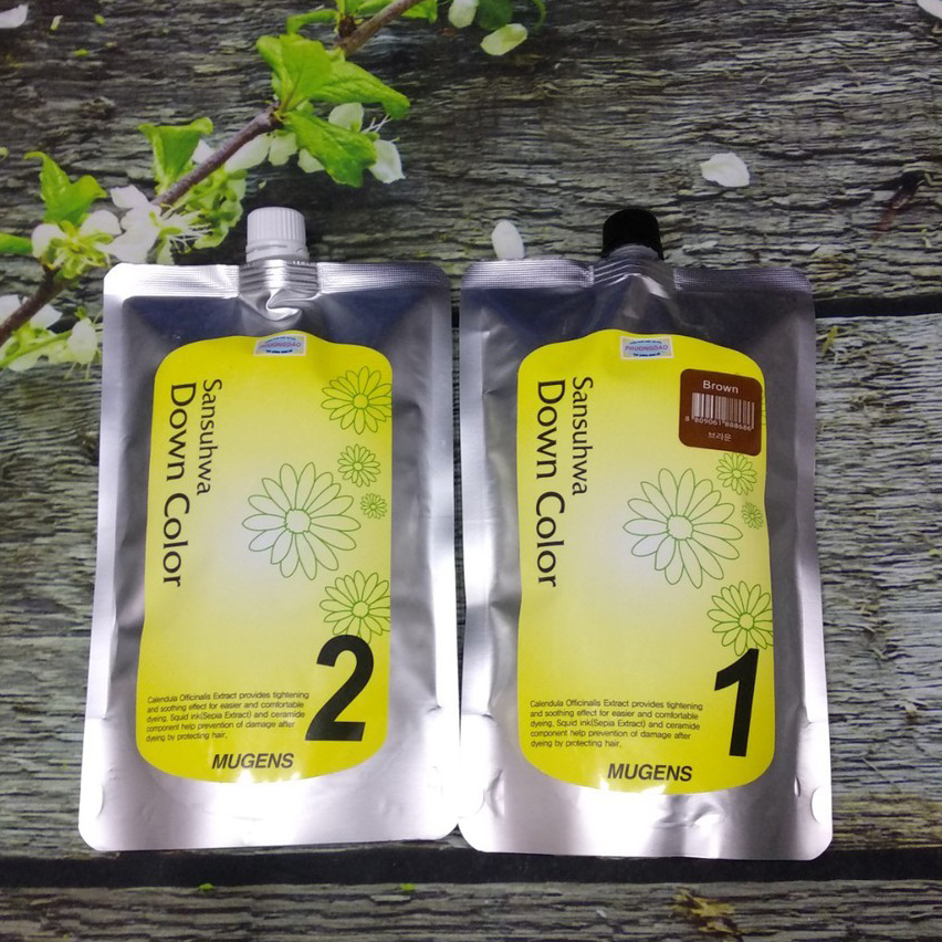 ✨Thuốc nhuộm tóc phủ bạc Mugens Sansuhwa Color Hàn Quốc Số 3 Nâu: Brown 2x450ml + Móc khóa