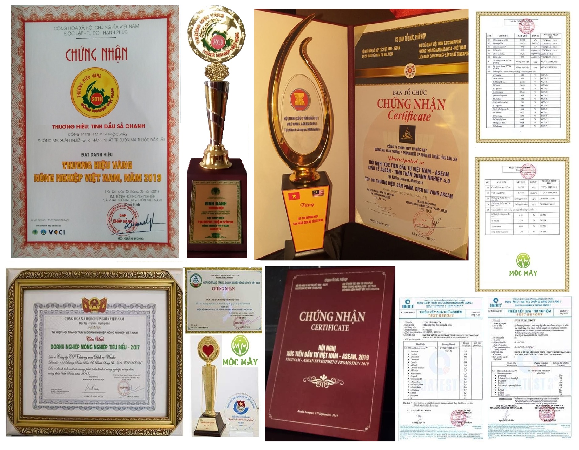 ĐÔI NÉT VỀ MỘC MÂY FARM Mộc Mây Farm là xưởng sản xuất tinh dầu có thể nói là lớn nhất Việt Nam hiện nay. Gồm 06 nhà máy tại Bình Dương, ĐắkLắk, Đồng Nai, Tiền Giang, Tây Ninh, Hà Nội. Cùng với đội ngũ kĩ sư giàu kinh nghiệm. Nay chúng tôi cho ra đời nhiều sản phẩm tinh dầu nguyên chất 100% đã được kiểm nghiệm từ mẫu đất trồng, nguồn nước tưới theo tiêu chuẩn Organic, bón phân hữu cơ, ko sử dụng hóa chất, kích thích tăng trưởng. Lò chưng cất hiện đại dùng điện 3pha, được chế tạo bằng inox cao cấp dùng trong y dược để tránh ra ten làm tinh dầu bị nhiễm kim loại nặng, mất đi tinh chất, mùi hương vốn có của tinh dầu trong quá trình chưng cất, tất cả đều đạt tiêu chuẩn xuất khẩu của trung tâm giám định Vinacontrol, Quatest3, Bộ y tế…và được tôn vinh trong lễ trao giải doanh nghiệp nông nghiệp tiêu biểu 2017, top 100 thương hiệu vàng nông nghiệp VN 2019, top 10 thương hiệu mạnh đất Việt 2020 và một số giải thưởng khác... Hiện tại chúng tôi đang bán sỉ cho hầu hết các đại lý lớn nhỏ và nhiều Cty dược, mỹ phẩm trong và ngoài nước ***Nếu các bạn đã từng sử dụng các loại tinh dầu ở nhiều nơi. Nay hãy cảm nhận sự khác biệt đến từ Mộc Mây Farm với triết lý đem tinh dầu Việt vươn xa thế giới. Mộc Mây Farm: “ nông trại của những mùi hương”