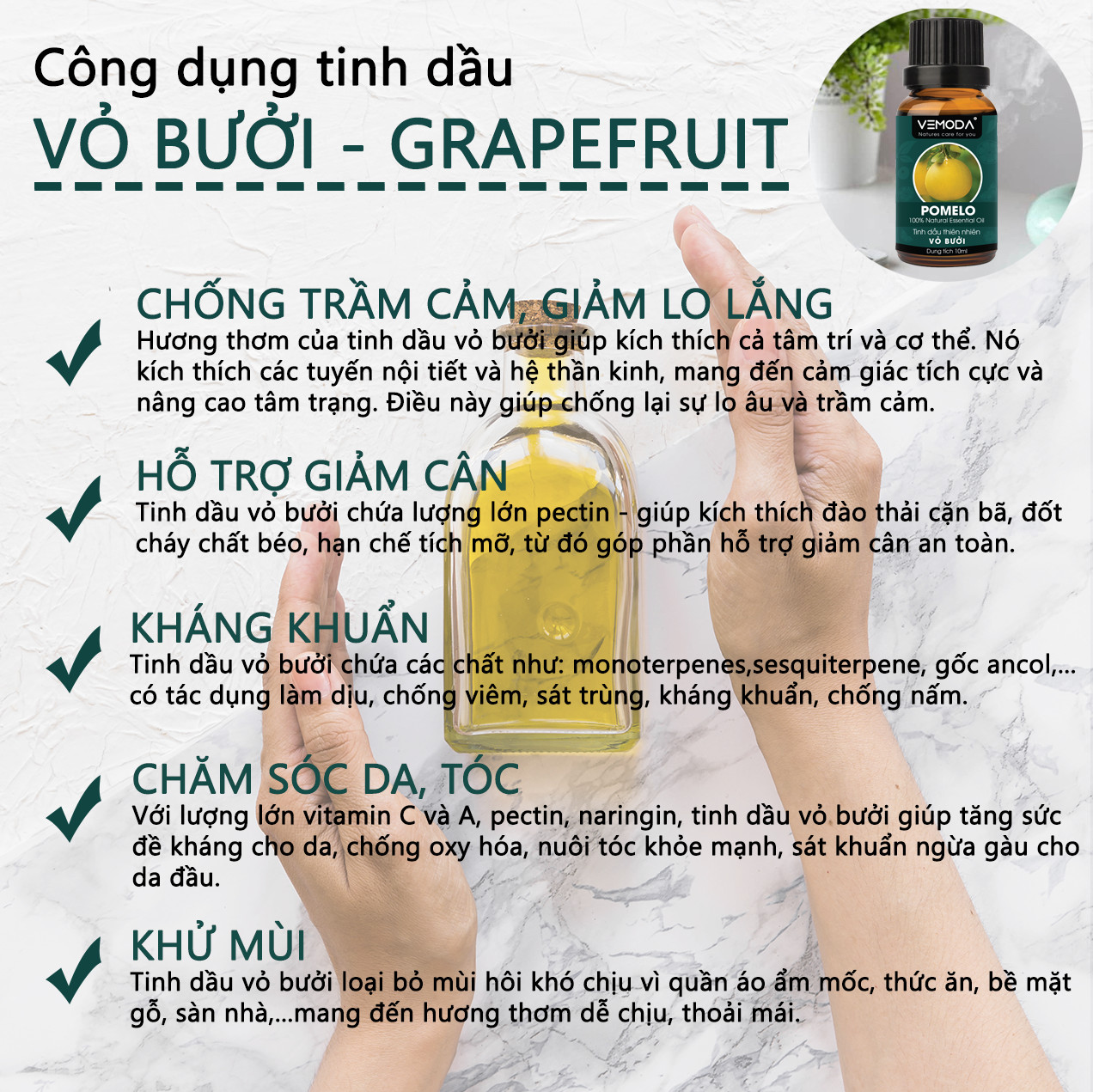✨Tinh dầu xông phòng gồm 3 lọ tinh dầu nguyên chất cao cấp Vemoda: tinh dầu Vỏ bưởi MG (Ấn) + tinh dầu Bạc hà (Ấn) + tinh dầu Sả chanh (Ấn)