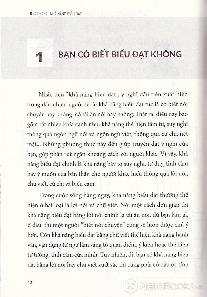 Nhắc đến khả năng biểu đạt, ý nghĩ đầu tiên xuất hiện trong đầu nhiều người sẽ là: khả năng biểu đạt tức là có biết nói chuyện hay không, có tài ăn nói hay không. Thật ra, điều này bao gồm rất nhiều khía cạnh như: khả năng thể hiện tâm tư, suy nghĩ thông qua ngôn ngữ viết, thông qua cử chỉ, nét mặt … Vì vậy, khả năng biểu đạt chính là khả năng bày tỏ suy nghĩ, tư duy, tình cảm hay ý muốn của bản thân cho người khác hiểu thông qua lời nói, chữ viết, cử chỉ và biểu cảm. Trong cuốn sách là những hình minh họa đơn giản, gần gũi giúp người đọc nắm rõ và có thể vận dụng được luôn những kiến thức về khả năng này.