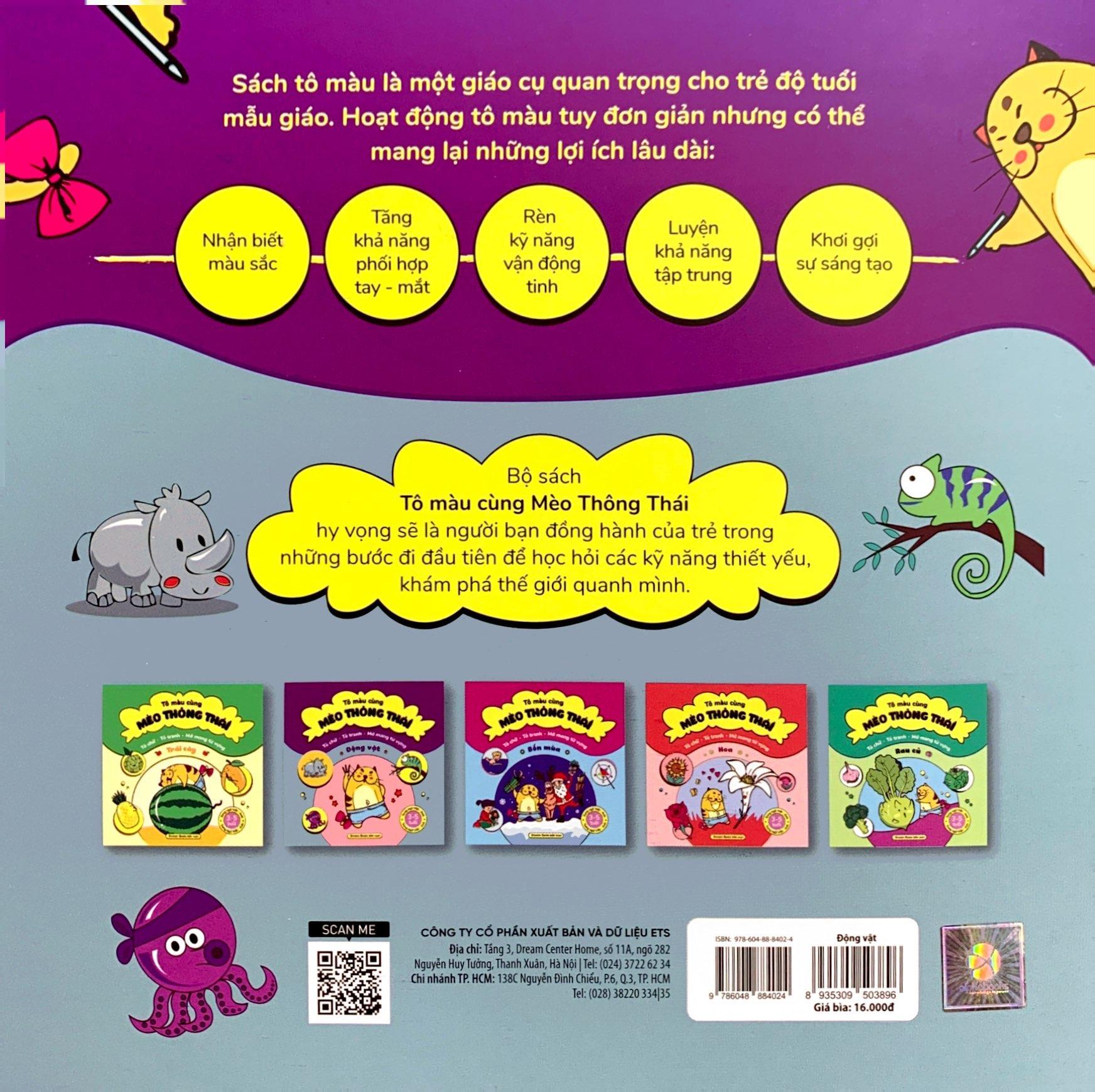 Tô Màu Cùng Mèo Thông Thái - Song Ngữ Việt-Anh - Động Vật (Dành Cho Trẻ Từ 3-5 Tuổi) Những năm đầu đời, trẻ có khả năng phát triển tư duy hình ảnh vượt trội,