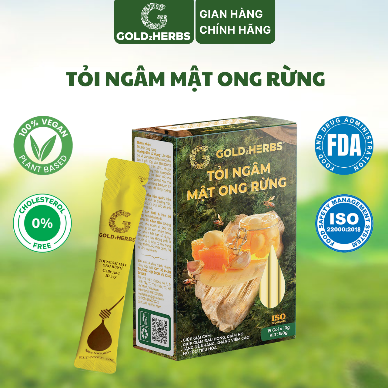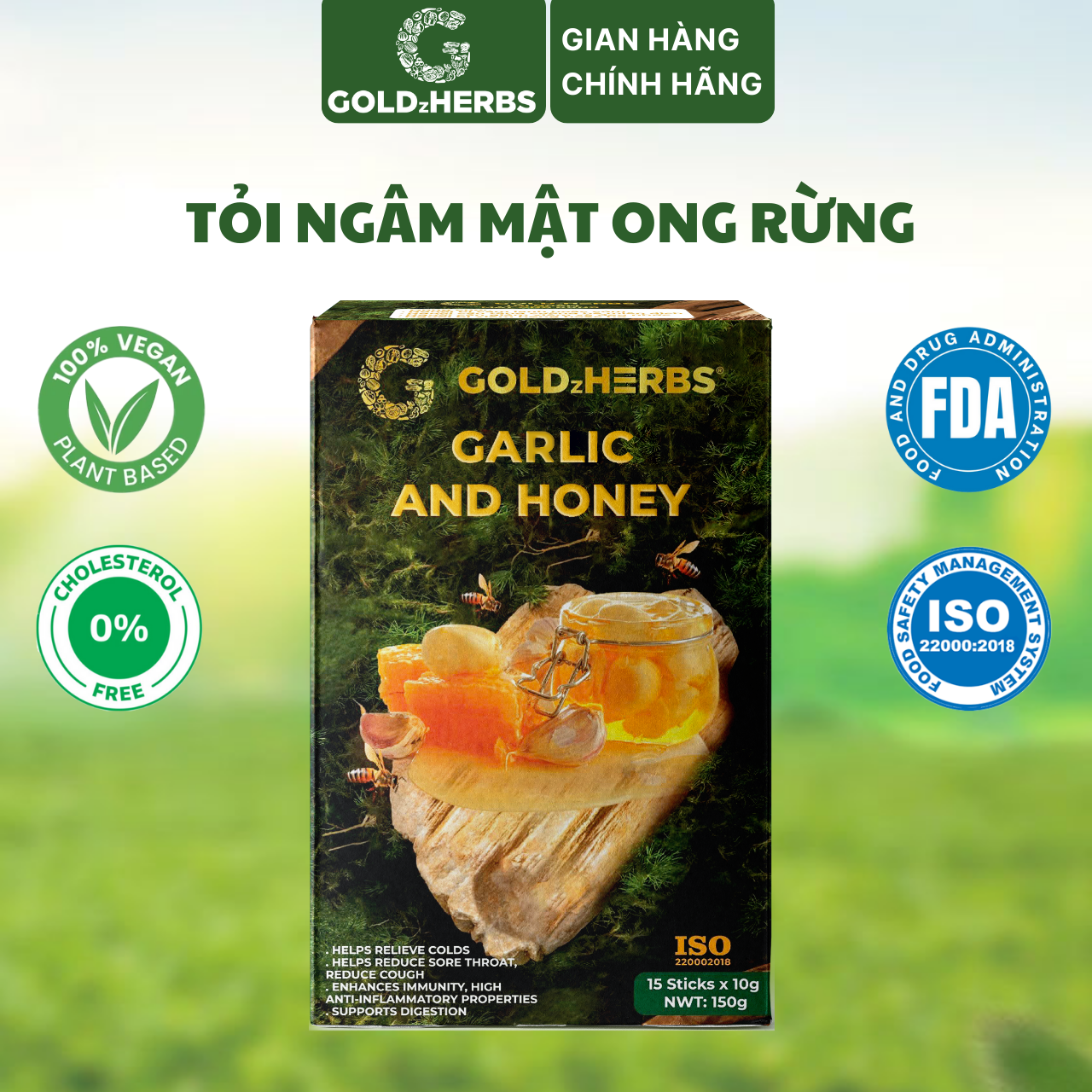 ✨Tỏi ngâm mật ong rừng GoldzHerbs, 100% mật ong nguyên chất – Hũ 300g/ Hộp 15 gói x 10g