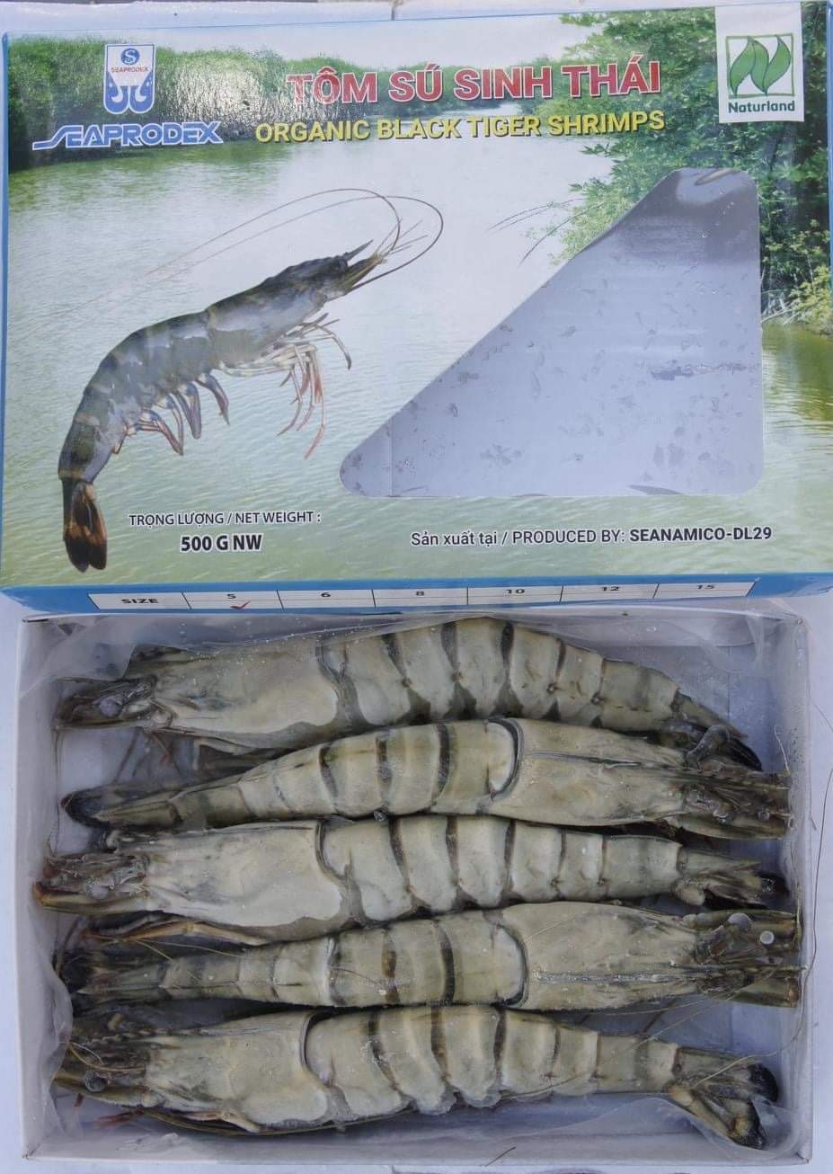 Sản phẩm Tôm sú nguyên con Organic của công ty được lấy nguyên liệu từ xã Viên An Đông, huyện Ngọc Hiển, Cà Mau. Nhà máy chế biến SEANAMICO-DL29 tọa lạc tại huyện Năm Căn. Những con tôm còn tươi sống được lựa chọn, rửa sạch, chế biến rồi cấp đông nhanh với nhiệt độ xuống tới -40 độ C, nên tôm đảm bảo hương vị tươi ngon như vừa đánh bắt lên.