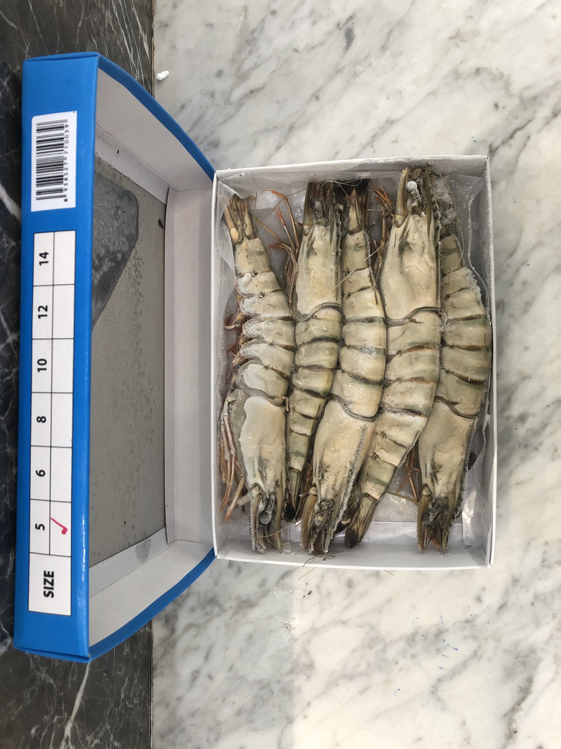 Tôm sú nguyên con sinh thái Seaprodex kích cỡ 5 con/hộp , 500gr ( Hộp màu xanh cam là hộp bao bì mới của Seaprodex)