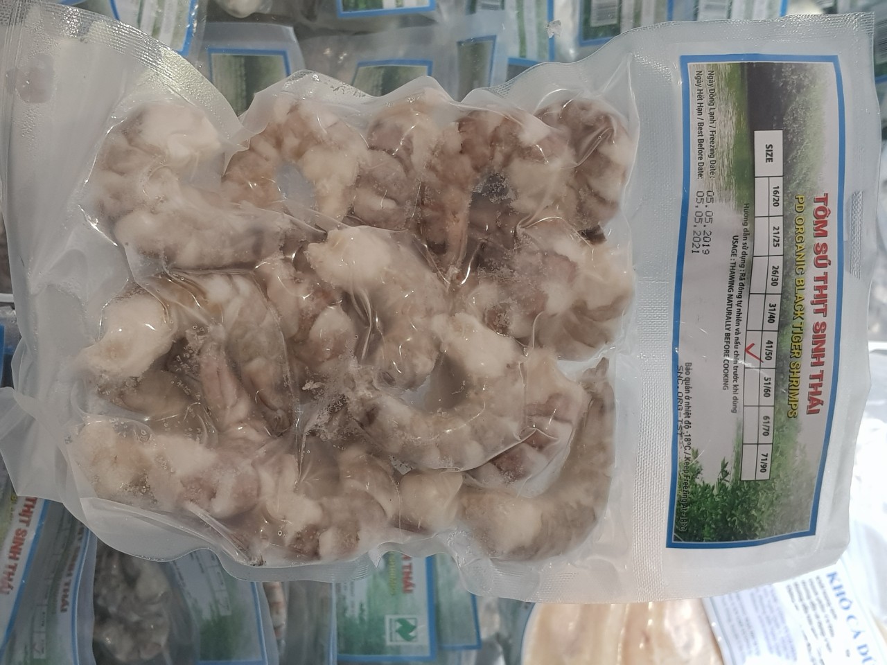 ***Tôm sú thịt sinh thái đông lạnh được đóng túi, cấp đông lúc tươi, tôm khi rã đông đảm bảo vẫn giữ được độ ngon và vị ngọt của tôm.