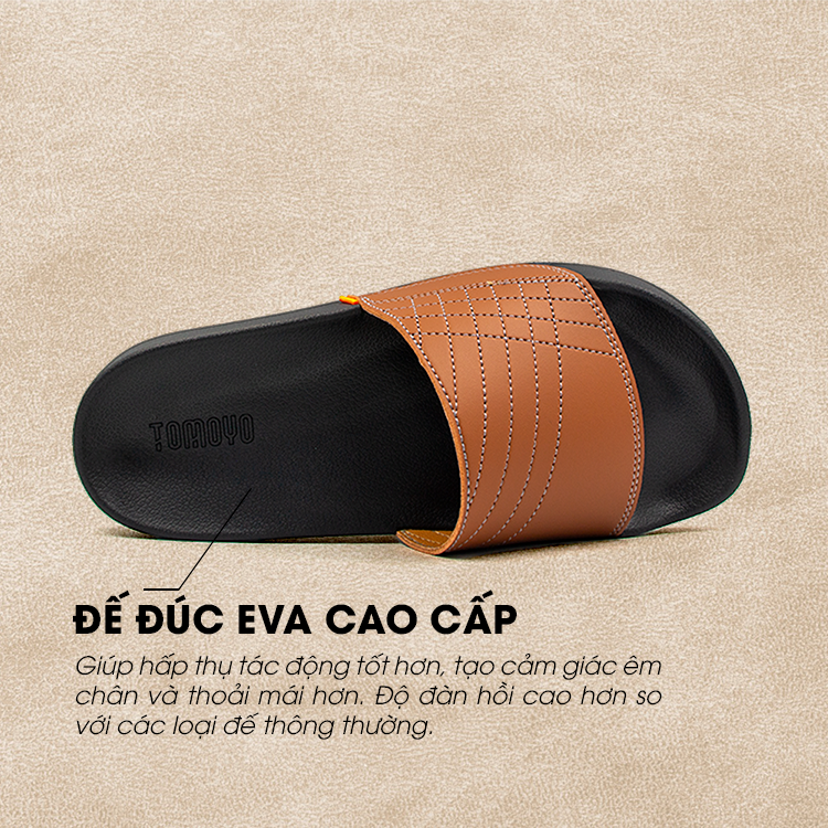 Dép Nam Da Bò Thật Tomoyo TMD10703 Sản phẩm được sản xuất theo công nghệ đóng giày thủ công Nhật Bản với quy trình kiểm soát chất lượng cực kỳ nghiêm ngặt. Thiết kế đơn