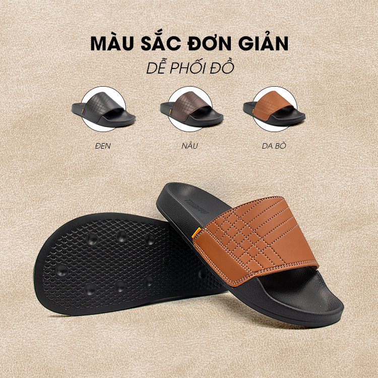 Dép Nam Cao Cấp Biti’s – Đẳng Cấp & Tiện Dụng - Thiết kế: Quai ngang bản to, điểm nhấn logo kim loại tinh tế, mang lại vẻ ngoài sang trọng. - Chất liệu: Da tổng hợp mềm mại, bền bỉ, dễ lau chùi. - Đế dép: Cao 5cm, đúc nguyên khối chắc chắn, bám dính tốt, giúp tăng chiều cao tự nhiên mà vẫn thoải mái khi di chuyển. - Màu sắc: Đen nam tính – Nâu sang trọng, dễ phối đồ. - Phong cách: Phù hợp đi làm, đi dạo, hay những dịp thường ngày cần sự tiện lợi nhưng vẫn lịch lãm. Một đôi dép – nhiều công năng: vừa tôn dáng, vừa êm ái, vừa thời trang.