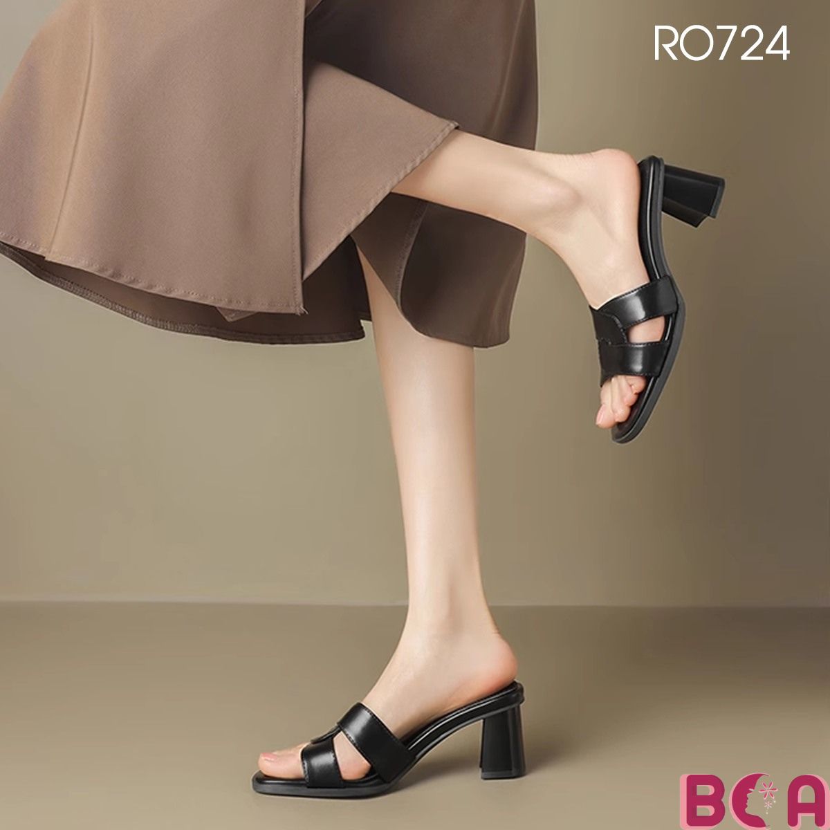 Mang guốc RO724 – lên dáng xinh, bước đi sang! Thiết kế tối giản nhưng cực kỳ cuốn hút, gót 7cm tôn dáng vừa đủ, đi làm hay đi chơi đều hợp! Da PU mềm,