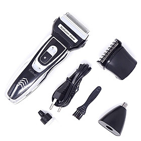 MÁY CẠO KHÔ ĐA NĂNG KEMEI KIÊM TÔNG ĐƠ CẮT TÓC 3IN1 Tên máy: Máy cạo râu đa năng - máy cạo khô đa năng 3in1 thay đầu lưỡi thành tông đơ cắt tóc, máy