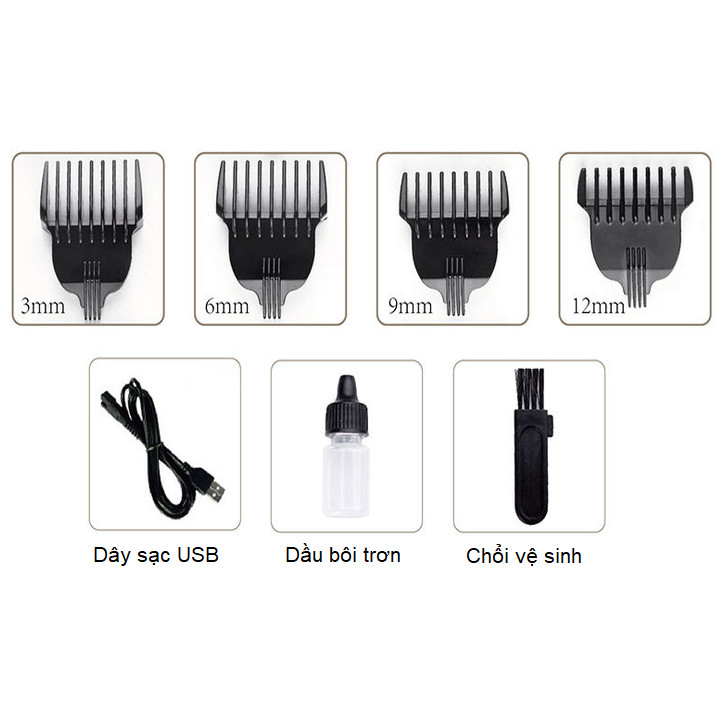 - Sản phẩm kèm theo lược căn độ dài tóc : 3mm, 6mm, 9mm và 12mm