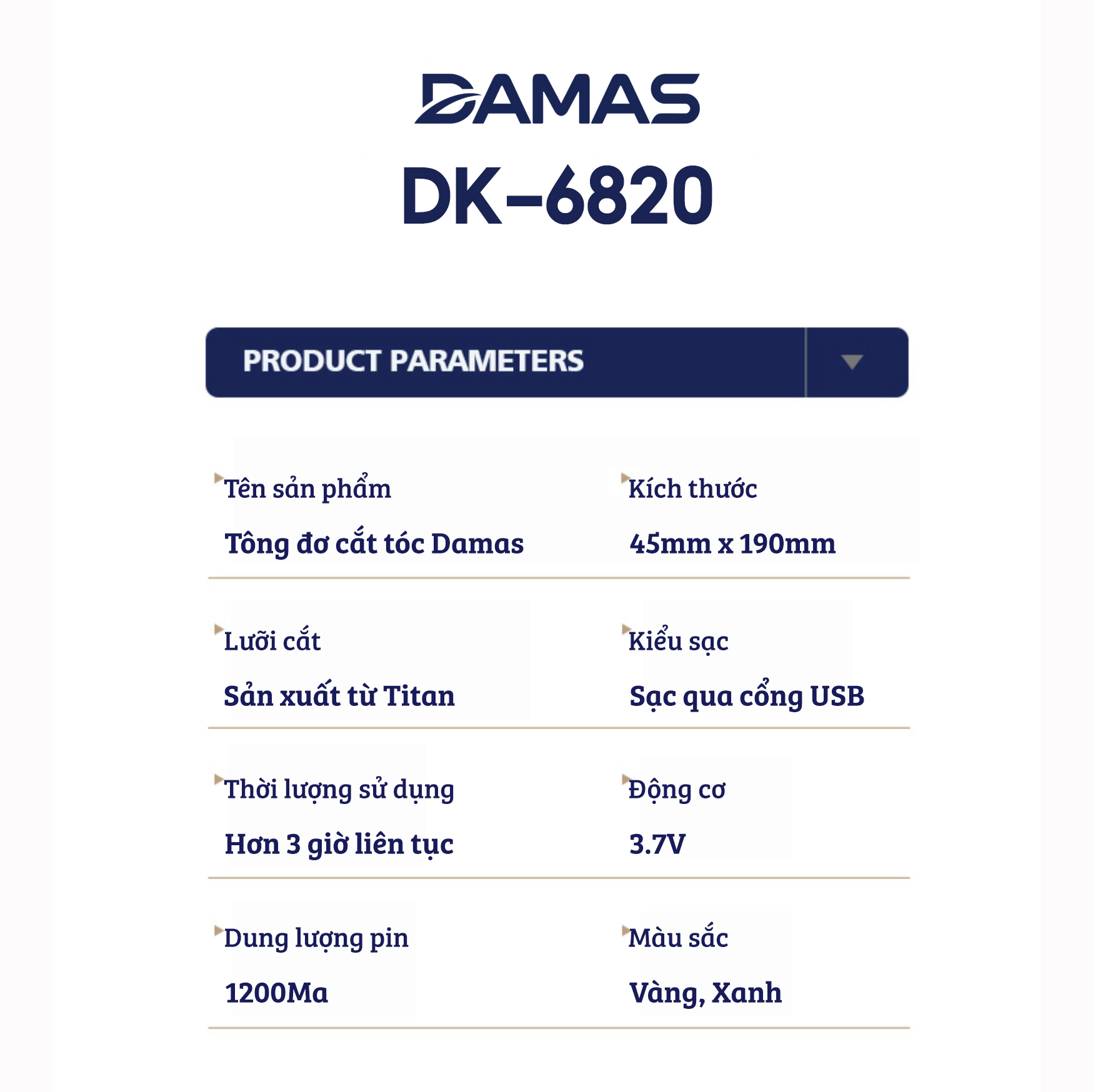 ✨Tông Đơ Cắt Tóc Damas DH-6820 – Thiết Kế Đa Năng Chống Nước Tuyệt Đối Nhỏ Gọn, An Toàn – Tặng Kèm Bộ Đồ Chuyên Dụng Chuẩn Salon – Hàng Chính Hãng