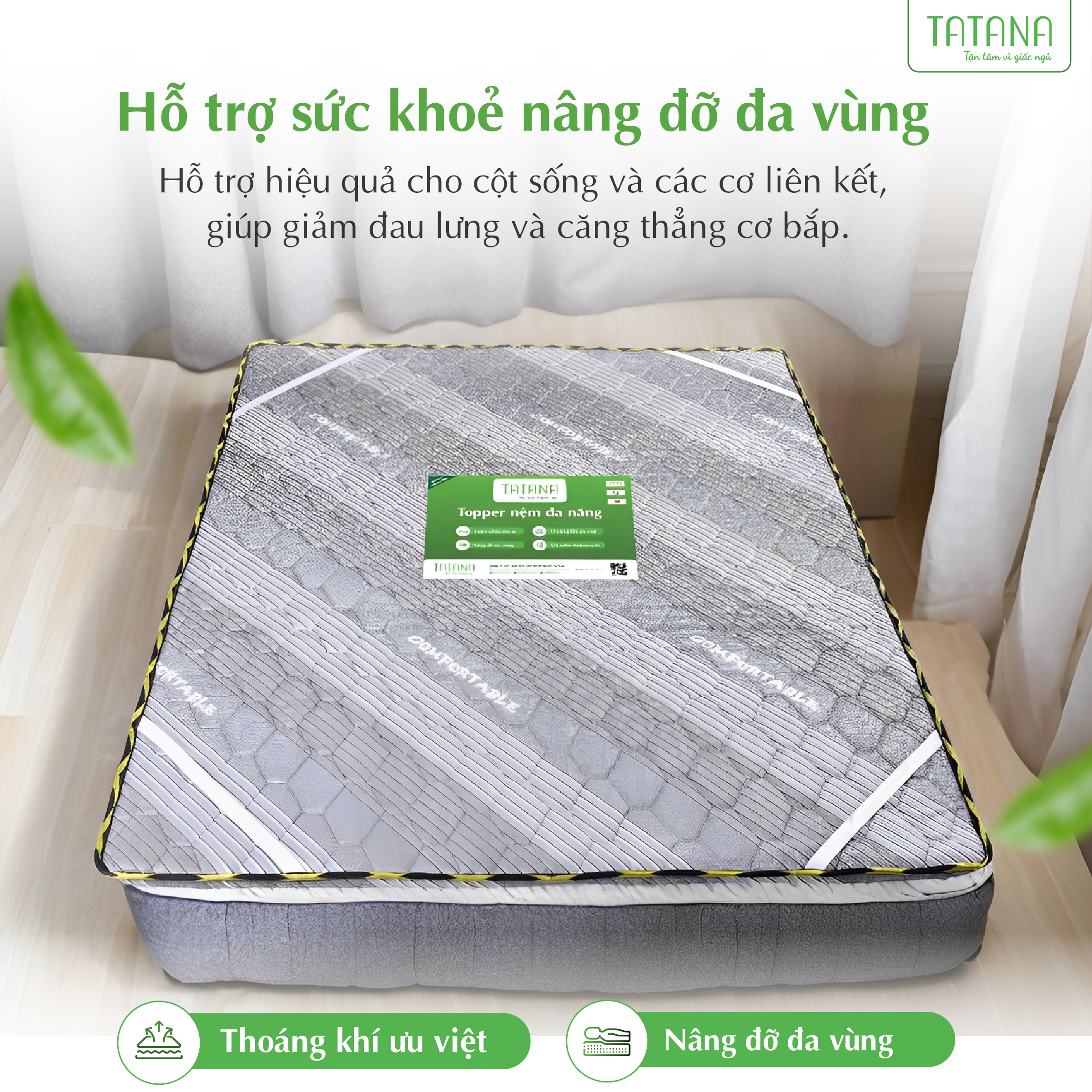 CẤU TẠO CỦA TOPPER TATANA - Vải Cotton: Topper Tatana được sản xuất theo quy chuẩn độ phồng 5cm, đây là dòng topper nệm cao cấp, hiện đại,phù hợp với nhu cầu sống hiện đại.