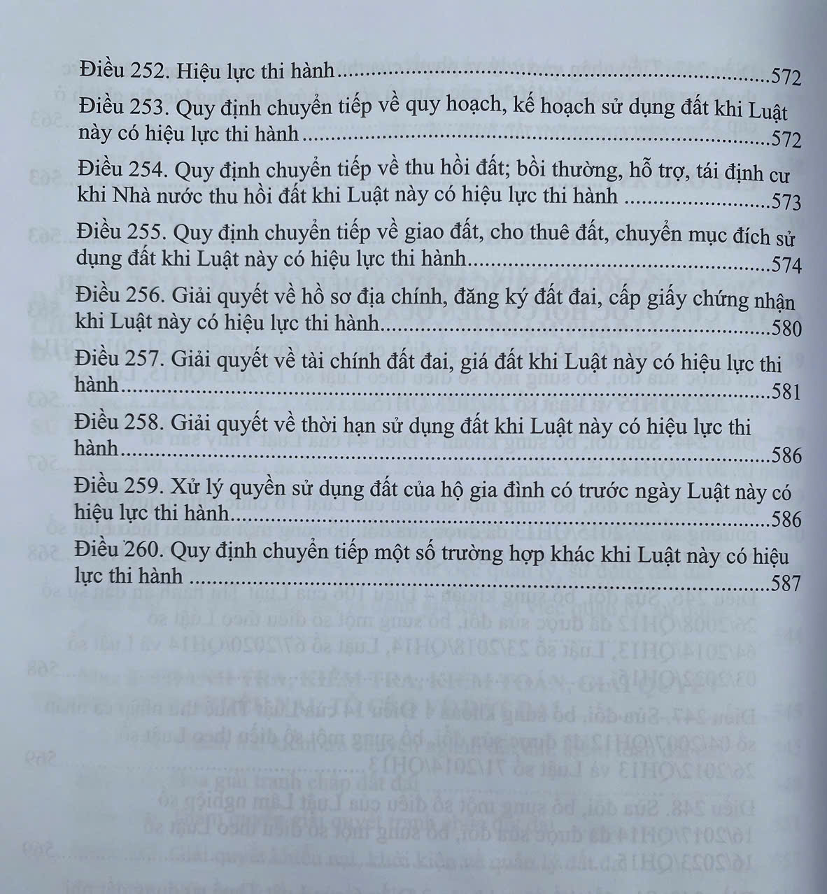 Cụ thể, Luật Đất đai năm 2024 gồm 16 chương, 260 điều, trong đó sửa đổi, bổ sung 180 điều của Luật Đất đai năm 2013, bổ sung mới 78 điều có hiệu lực thi hành ngày 01/08/2024, trừ Điều 190 và Điều 248 Luật Đất đai năm 2024 có hiệu lực thi hành ngày 01/04/2024.