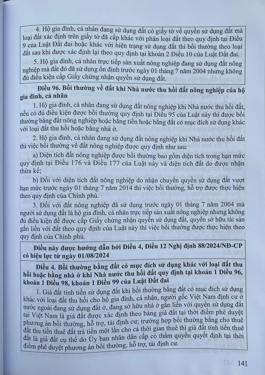 Ngày 18/01/2024, Quốc hội nước Cộng hòa xã hội chủ nghĩa Việt Nam thông qua Luật Đất đai số 31/2024/QH15, đã thể chế hóa đầy đủ, kịp thời các quan điểm, chủ trương của Đảng